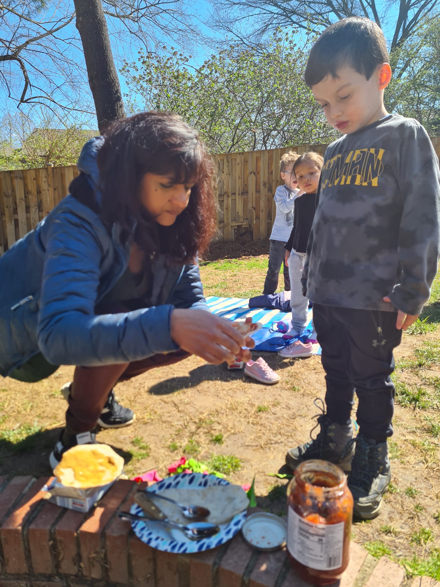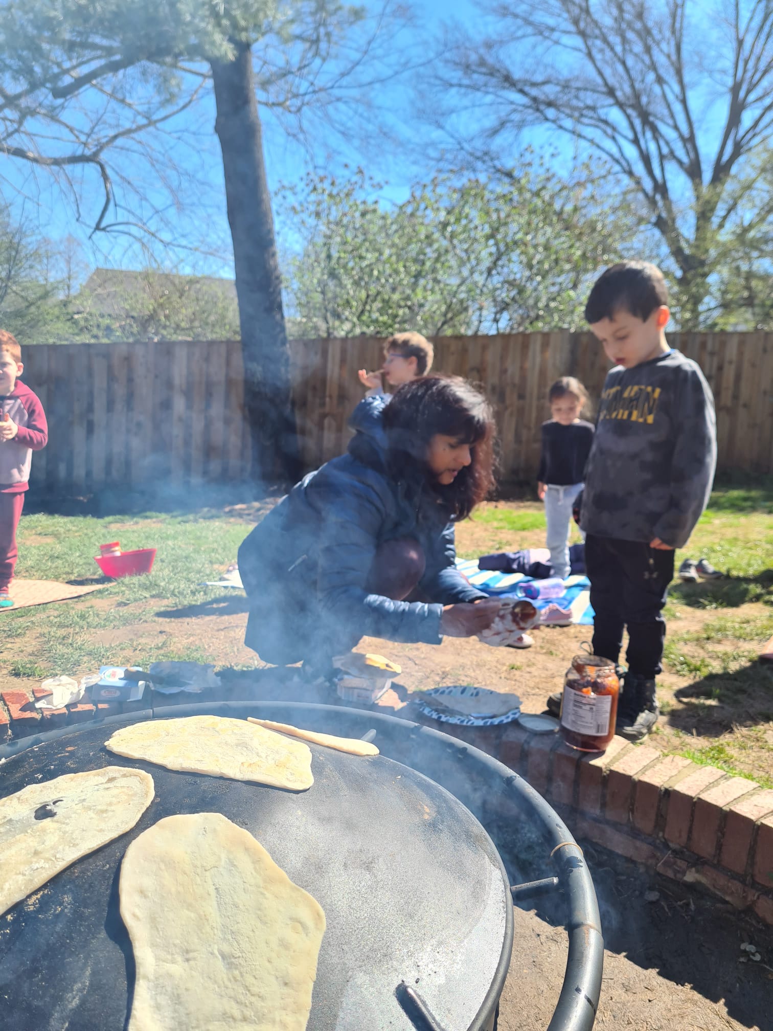 In the days leading up to Pesach ( Passover) , our children stepped into history, reliving the journey of Bnei Yisrael as they hurried to leave Mitzrayim. In true Montessori fashion, they engaged in a hands-on experience that connected them to the deeper meaning of the holiday—baking their very own matzah on our school’s tabun (fire pit).